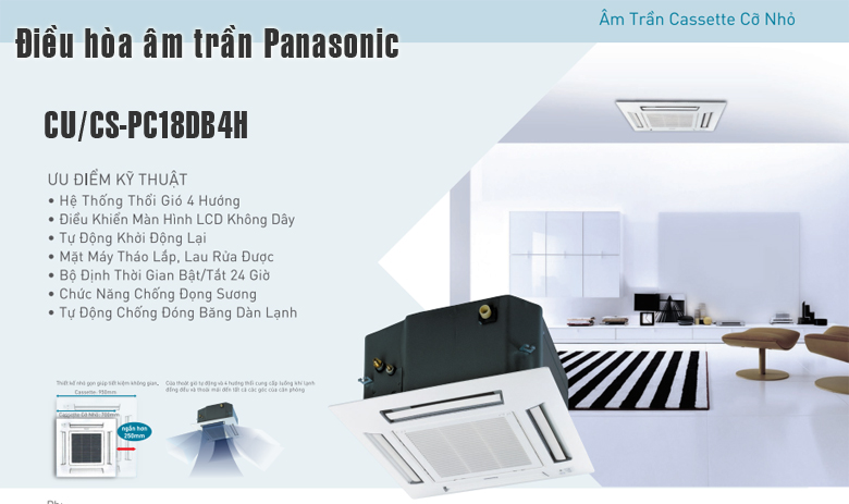 Điều hòa âm trần Panasonic 18000BTU CU/CS-PC18DB4H loại mini cassette 1 chiều lạnh sử dụng gas R22 nhập khẩu chính hãng Malaysia lựa chọn lý tưởng cho công trình của Bạn.